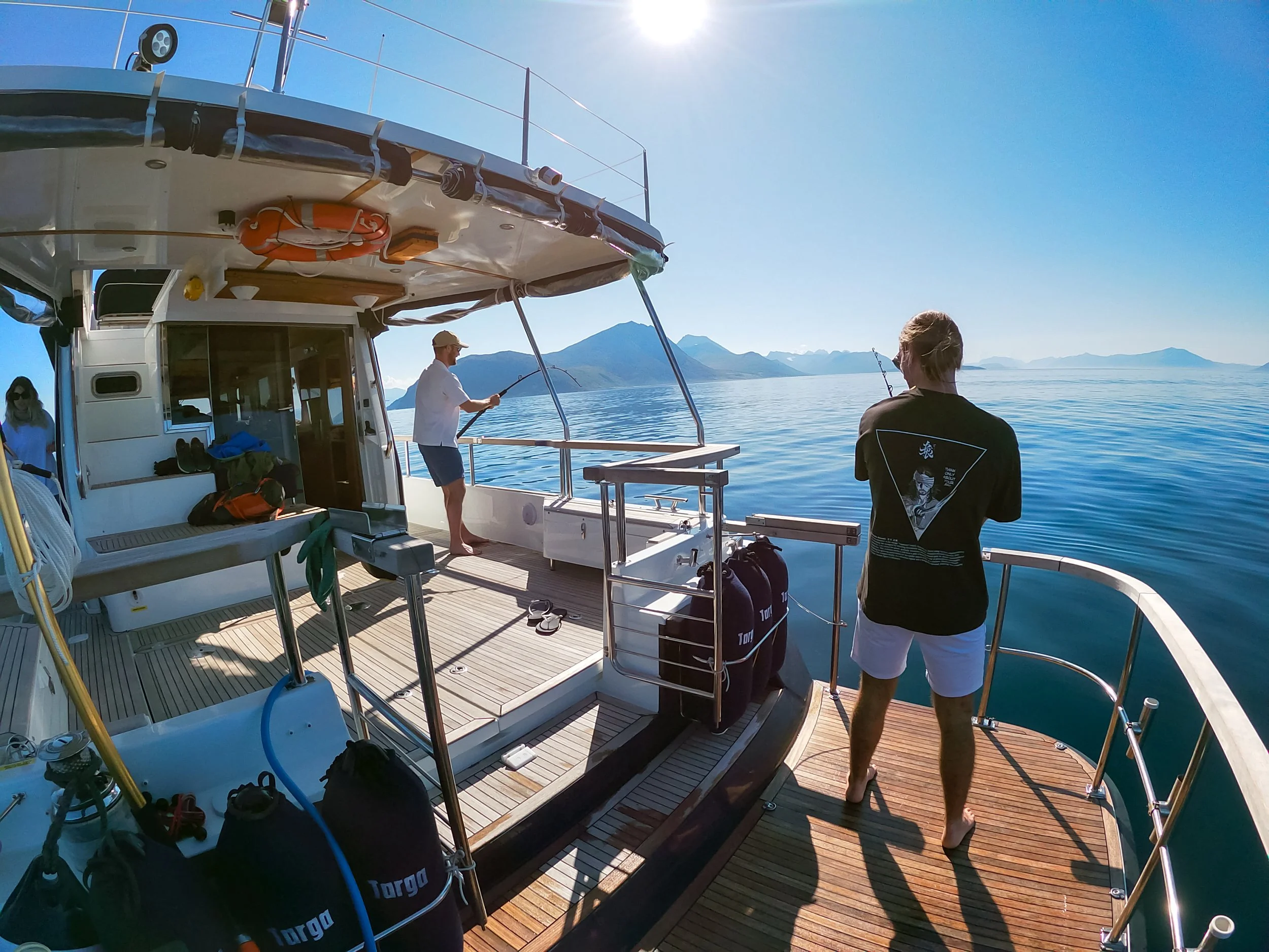 Vi seiler fra Nord lenangen, og cruiser rundt i fjordene for å finne de beste stedene og prøve å fange noen av artene som finnes i dette området, som torsk, sei, hysefisk eller makrellfisk.